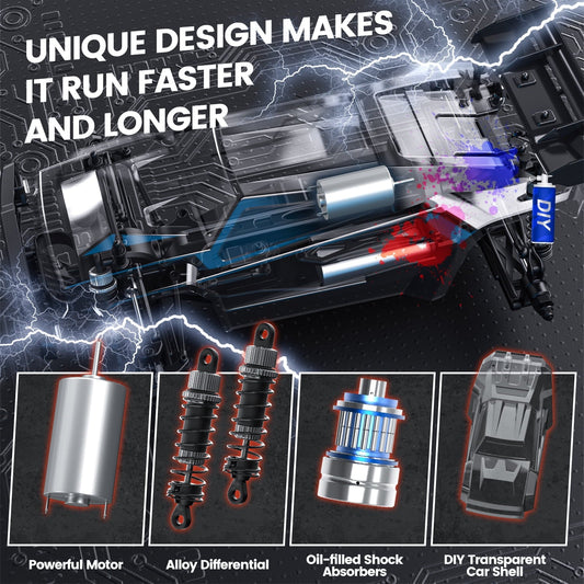 Loheer 1:16 RC Car for Adults & Kids, All Terrain 4x4 Remote Control Car, 40+ km/H Off-Road RC Trucks, 40+ Mins Running High Speed Remote Control Trucks for Teen Boy Girl Gifts